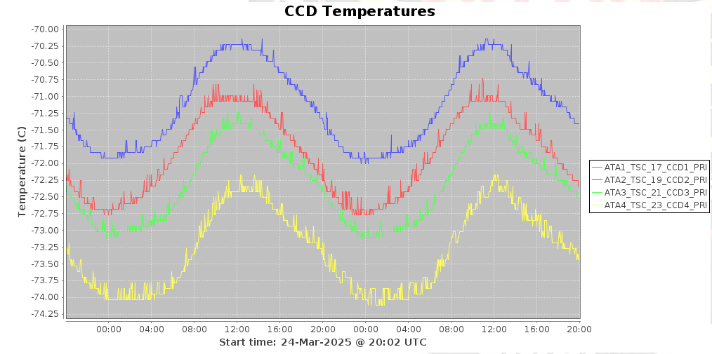 Nominal (as of 3/26/2025) CCD temperatures plot example: