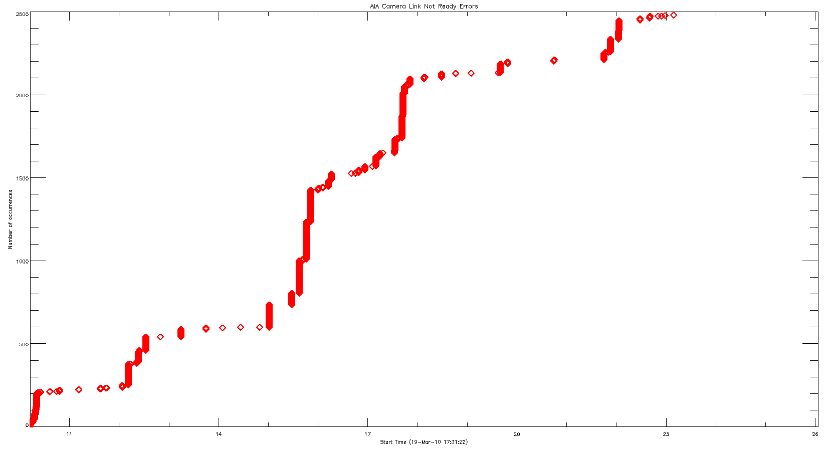 AIA Camera Link Not Ready Errors (IMC216) No IAR assigned: Occur during times of high solar activity. Additional bright pixels from