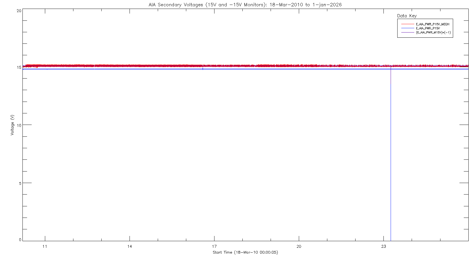 It looks a little bit like the 15 V (blue) monitor is trending downward, but it is
