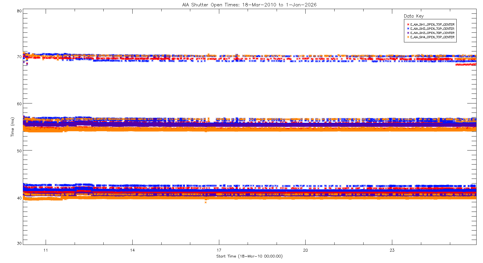 Commanded Exposure time occasionally reaches as high as 40 ms during times of high activity during the