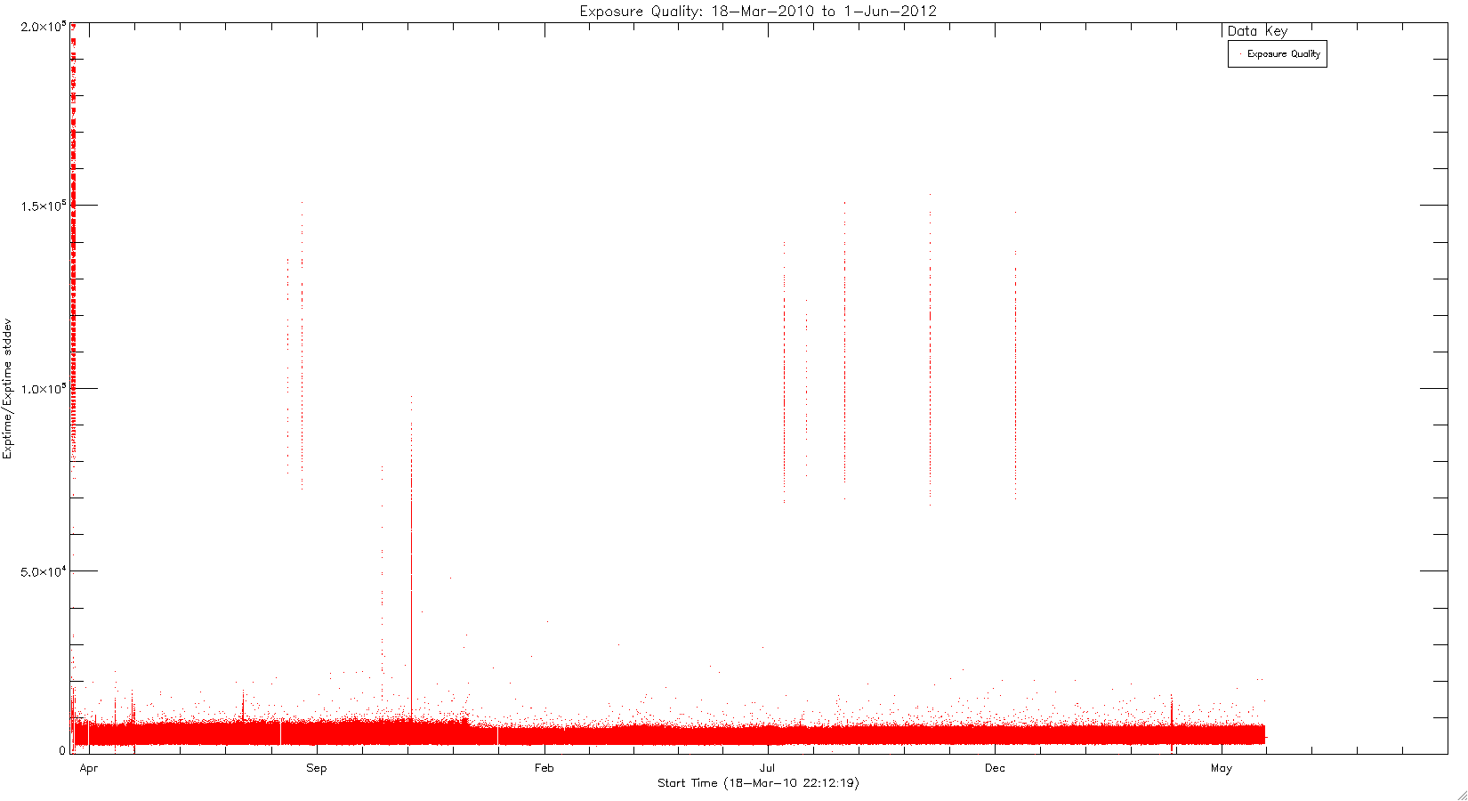 Jump in exposure time is to compensate for front window darkening. (12/04/2012)